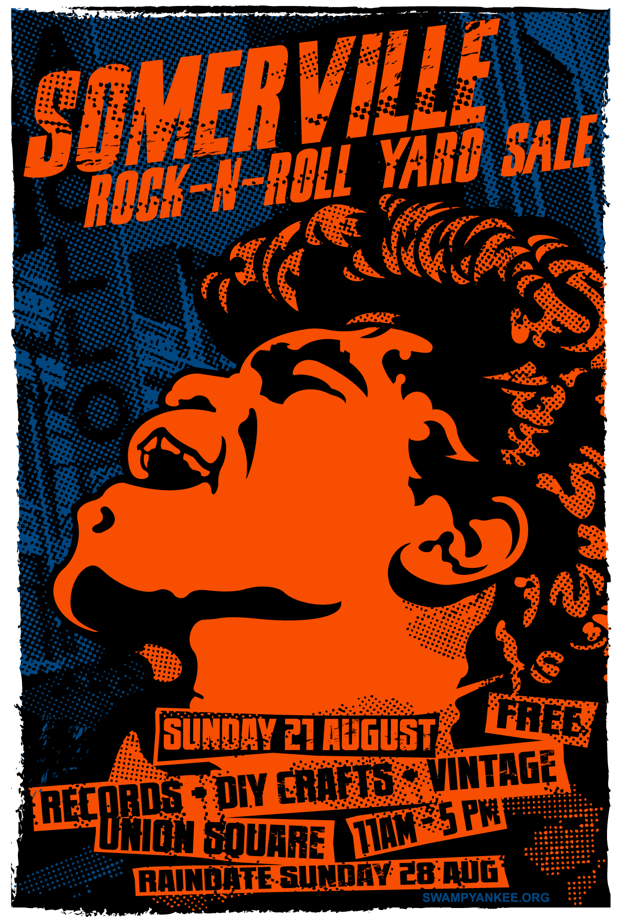 Saturday 11th September in the Boston area. it’s our annual Somerville Rock + Roll Yard Sale at Union Square Plaza, 90 Union Square, Somerville, MA | here’s Swamp Yankee‘s poster for the event (r.i.p. Dusty Hill) | | | | the Somerville Rock And Roll Yard Sale is organized and promoted by Chris and Jennifer of What Cheer Records + Vintage with assistance from the Somerville Arts Council and is part of their ArtsUnion programming. | our Rock and Roll Yard Sales feature live music, a wacky DJ spinning fun thrift store finds, and a large number of locally sourced independent vendors selling an eclectic + fun mix of records, vintage + DIY handmade goods. scroll down for our complete vendor list! our host DJ is Patrick Bryant aka DJ Subject To Change and performing live with be Nightspell (Boston) in addition to The Hammer Party (Providence, Rhode Island). live music starts at 2pm. |