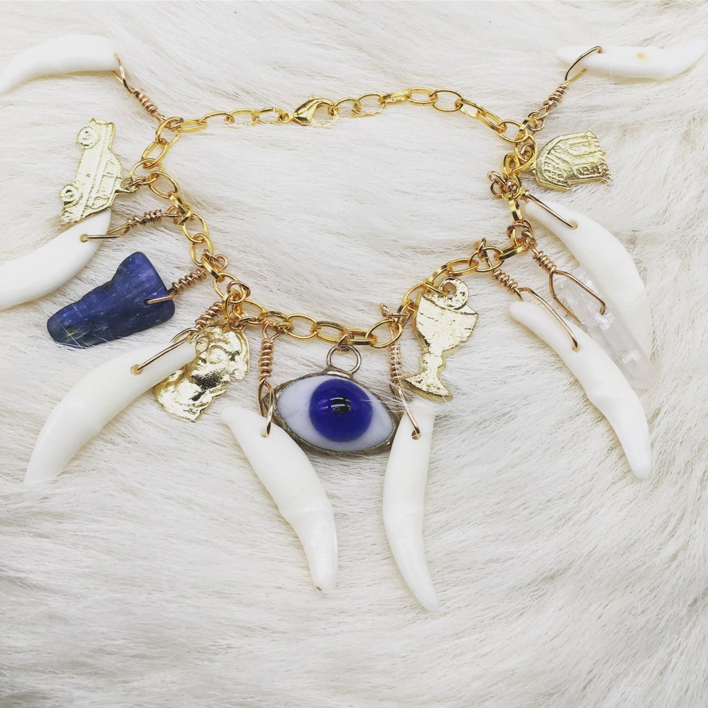 Thunderwing Handmade Jewelry Made from Vintage Metal work, Feathers + Teeth (“It’s all pretty Rock n’ Roll Gypsy Queenish”)